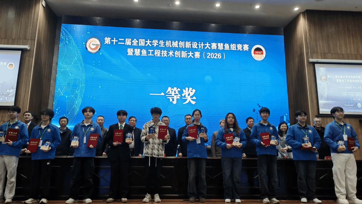 4月17—19日,由全国机械原理教学研究会、全国机械设计教学研究会、金工研究会指导,由全国大学生机械创新设计大赛组委会主办,慧鱼组竞赛组委会、北京中教仪人工智能科技有限公司、青岛理工大学承办的第12届全国大学生机械创新设计大赛慧鱼组竞赛暨慧鱼工程技术创新大赛(2026)在青岛理工大学黄岛校区举行。东北大学机械学院师生荣获一等奖三项,东北大学获优秀组织奖。